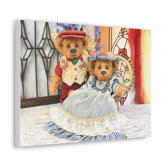 Charming Bear Couple Canvas Art Print, Kids Room Decor, Nursery Wall Art, Gift for Baby Shower, Vintage Teddy Bear Decor