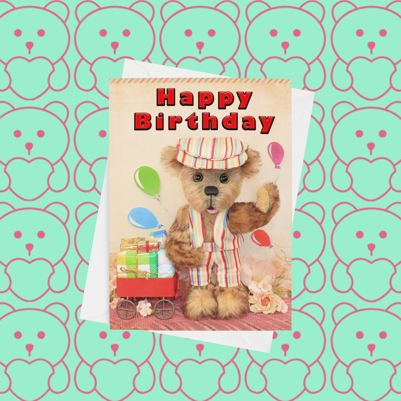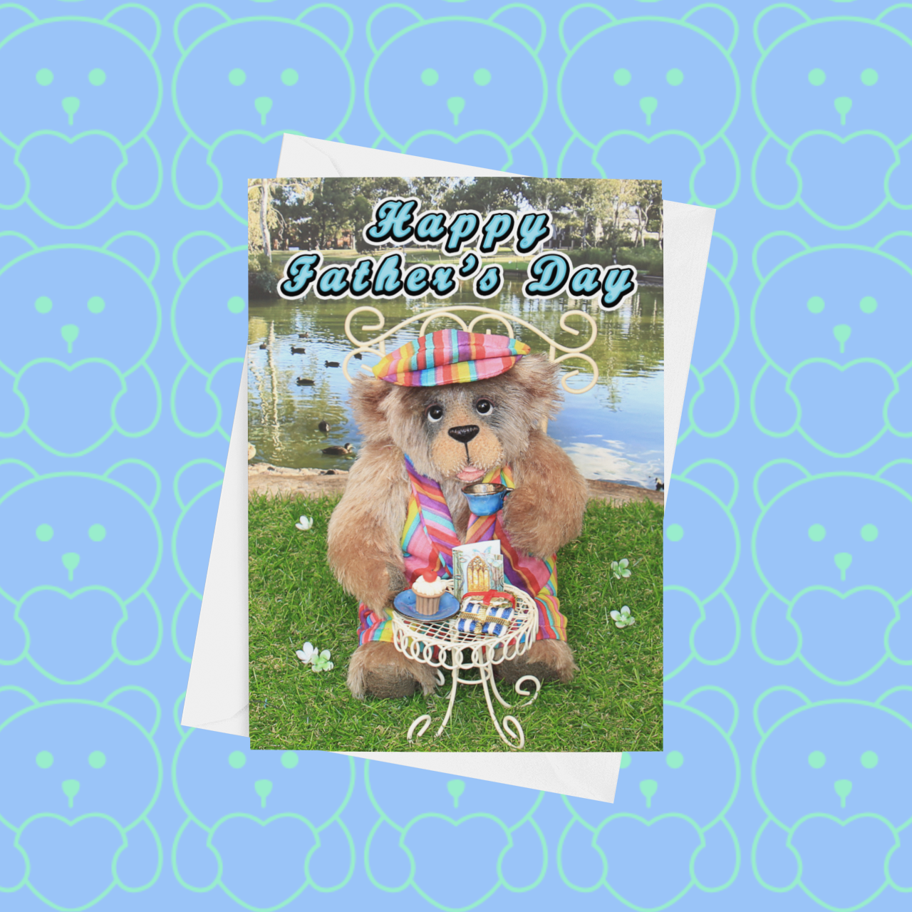 While the bears hold a special place in my heart, I wanted to share their charm with the world in a way beyond collectors. That's how my range of greeting cards was born. Featuring bright, quirky, and heartwarming designs, these cards showcase my teddy bears in creative scenes that are perfect for any occasion. My cards are larger than most to highlight each bear's intricate details and personality. Printed with a glossy finish, they are as much a joy to give as they are to receive.